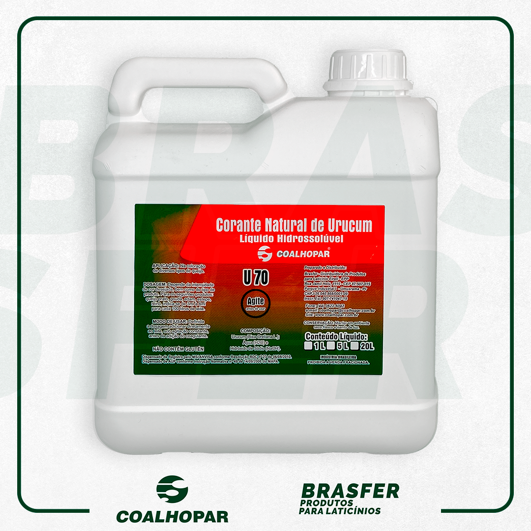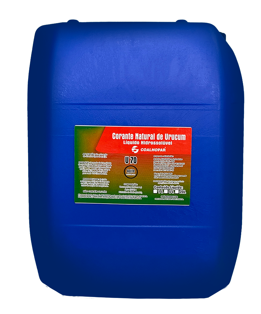 Descrição: Corante hidrossolúvel, produzido pela extração dos pigmentos da semente de urucum (Bixa orellana), através de solução aquosa de hidróxido de potássio. O princípio ativo predominante é a norbixina.